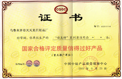 2005年8月25日佳美特系列產品被國家評定為質量信得過好產品稱號。