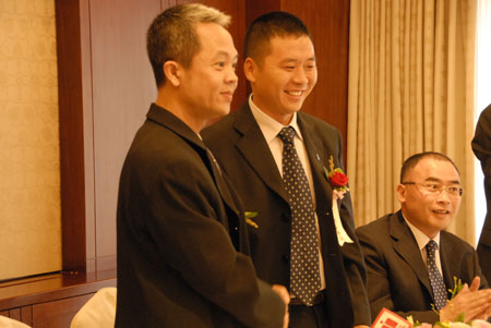 上圖:天天快遞總部副董事長詹際煒(主席臺中)在簽約儀式上