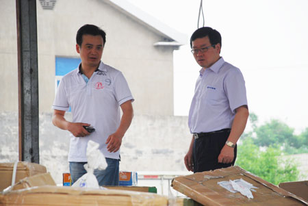 上圖:董事長(左)與宿遷公司總經理張斌交流