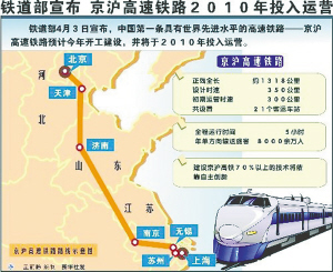 滬高速鐵路項目終于拿到了最重要的一張“通行證”。國家發(fā)展和改革委員會日前透露,京滬高鐵可行性研究報告已獲得國務院批準,而另據(jù)來自鐵道部28日的最新消息,注冊資本1100億元的京滬高速鐵路有限公司年內(nèi)將掛牌,這意味著該項目將進入正式施工階段。