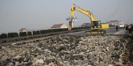 經過高速公路經營業主及相關工程技術人員對塌陷路段的安全情況進行會診,確認衢州方向的車道路基未受影響,可以通行車輛,但是杭州方向車道的塌陷搶修施工需要一周左右的時間。