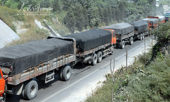 11月6日早晨6點(diǎn)多,記者在現(xiàn)場(chǎng)看到,此時(shí)被堵在公路上的車輛已前不見頭,后不見尾,大多是運(yùn)送煤炭的大型貨運(yùn)卡車。據(jù)了解,這一路段位于山西省臨汾市西北方向,當(dāng)?shù)厥a(chǎn)煤炭,運(yùn)煤車輛超載現(xiàn)象十分嚴(yán)重,公路超負(fù)荷,路面損毀不堪。另外,山高坡陡也是造成堵車現(xiàn)象的原因之一。記者在臨大公路劉村鎮(zhèn)路段看到,一些運(yùn)煤車的馬槽加高足有一米,滿滿地拉著一車煤,車廂沒有遮蓋帆布,遇上刮風(fēng),粉煤四處飄灑。長(zhǎng)長(zhǎng)的運(yùn)煤車隊(duì)沿著破爛不堪的公路四處停靠。