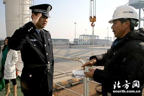 東港站站長趙景發(fā)說:“現(xiàn)在東港站‘一站轄兩區(qū)’,既要做好原有轄區(qū)的邊防檢查工作,還要做好東疆保稅港區(qū)的邊防檢查工作,這對我們來說是前所未有的考驗。為了做好東疆保稅港區(qū)的出入境邊防檢查工作,我們已經(jīng)補充了警力,配足了通訊器材、車輛、警械等,組成了三個專門勤務(wù)組,包括檢查組、監(jiān)護組、處理突發(fā)事件組,負責(zé)東疆保稅港區(qū)出入境船舶的檢查、監(jiān)護和事件處理工作,保障東疆保稅港區(qū)封關(guān)運作后,出入境秩序正常。”