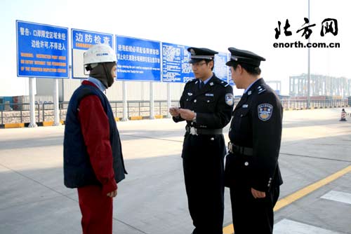 天津東疆保稅港區(qū)內(nèi)的口岸限定區(qū)域在管理上,也首次采用了聘用邊檢協(xié)管員參與管理的方式。東港站巡查隊隊長孫強介紹說:“口岸限定區(qū)域與港內(nèi)其它區(qū)域有防潮堤相隔,區(qū)域之間由棧橋相連接。這樣相對獨立的設(shè)計,使邊檢協(xié)管員更便于參與口岸檢查工作。