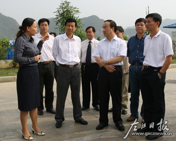 圖為崇左市委書記、市人大常委會主任羅殿龍(前左二)等有關領導陪同交通部副部長翁孟勇(前左三)到中國—東盟自由貿(mào)易區(qū)憑祥物流園了解物流園運行情況。(王岳琛 攝)