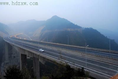 在高速路上飛馳,記者一行最大的感受就是橋連隧、隧連橋,整條路穿行在崇山峻嶺間。全線136公里,共有106座橋梁、22.5座隧道,隔幾十秒就是一座橋。更令人驚嘆的是,這些橋大都修建在懸崖峭壁上。