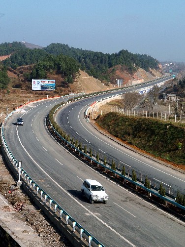 12月11日,汽車行駛在貴遵公路改擴建的高速公路上。貴遵公路扎佐至南白高速公路改擴建工程起自貴陽市修文縣扎佐鎮(zhèn),經(jīng)息烽縣至遵義縣南白鎮(zhèn),路線全長84.5公里,將于12月26日實現(xiàn)通車。改擴建后的貴遵公路扎佐至南白高速公路段,是渝湛國道主干線在貴州省境內(nèi)的重要組成部分。