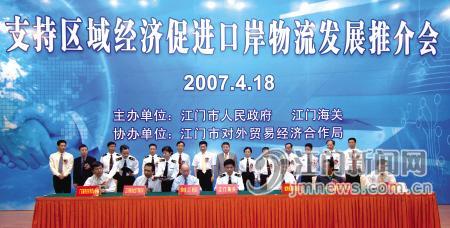 江門海關(guān)支持區(qū)域經(jīng)濟(jì)促進(jìn)口岸物流發(fā)展推介會簽約現(xiàn)場。黃志剛 攝