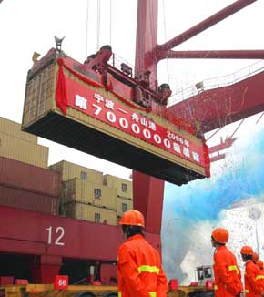寧波交通運輸協(xié)會堆場委員會秘書長高林說,由于成本的猛漲,近兩年來,連一直實行國家指導(dǎo)價的港區(qū)內(nèi)企業(yè)的作業(yè)收費也開始增加,其中集裝箱的倉儲費提高了整整一倍,于是,我們也商議增收附加費方案,先是小箱30元、大箱60元,經(jīng)征求用戶意見,說有些偏高,最后定下來是小箱20元、大箱40元。我們認為,這個費用并不高,貨主和有關(guān)企業(yè)是可以承受消化的。