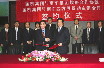 中國(guó)南車(chē)集團(tuán)公司是我國(guó)軌道交通裝備制造業(yè)的龍頭企業(yè),其鐵路機(jī)車(chē)、客車(chē)、貨車(chē)、動(dòng)車(chē)組等產(chǎn)品已出口到世界30多個(gè)國(guó)家和地區(qū)。國(guó)機(jī)集團(tuán)是我國(guó)最大的國(guó)際工程承包和進(jìn)出口貿(mào)易企業(yè)之一,以成套機(jī)電設(shè)備為載體的工程承包是其主體業(yè)務(wù)。南車(chē)集團(tuán)與國(guó)機(jī)集團(tuán)的強(qiáng)強(qiáng)聯(lián)合、戰(zhàn)略合作,將使雙方攜手發(fā)揮各自優(yōu)勢(shì),在國(guó)際鐵路機(jī)車(chē)車(chē)輛市場(chǎng)密切合作,促進(jìn)中國(guó)鐵路機(jī)車(chē)車(chē)輛進(jìn)一步走向國(guó)際市場(chǎng)。