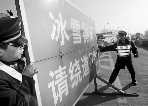 9點10分,在監(jiān)控中心統(tǒng)一調度下,“惡劣天氣信息聯(lián)動專案”啟動,情報板、交通臺分別進行信息滾動;緊接著交警在路政、施工隊的配合下對車輛進行分流,并向蓄積車輛的司機分發(fā)“車輛分流示意圖”,上面清晰地注明繞行路線。演習還首次加入“調頭分流”方案,即由警車壓道,以20至30公里的時速引領滯留車輛通過分岔口調轉方向,駛回市區(qū)。10點,車輛成功疏散,高速公路交通恢復正常。