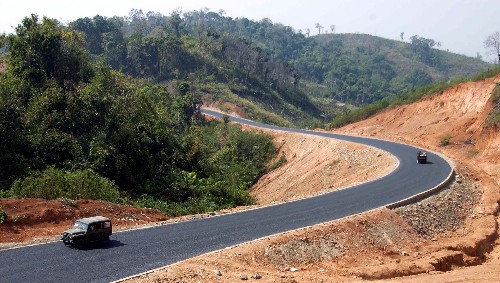 3月26日拍攝的穿越緬甸北部的騰密公路。中國連接南亞次大陸的騰密公路(云南騰沖至緬甸密支那)全長95公里,路基工程已于2006年12月底全部完工,目前騰密公路境外段正在進行路面工程建設,預計4月底建成通車。新華社發 (禹江寧 攝)