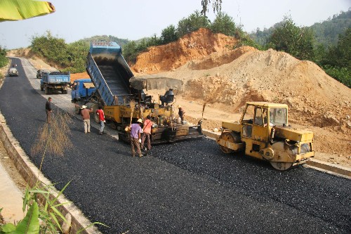 3月25日,中國工程技術人員在騰密公路上緊張施工。新華社發 (禹江寧 攝)