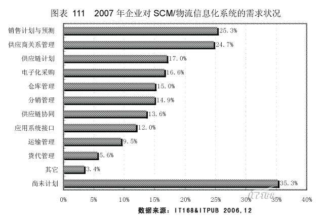 根據(jù)IT168在2006年12月份得來的調(diào)查數(shù)據(jù),2007年企業(yè)對SCM/物流信息系統(tǒng)的需求狀況如下圖: