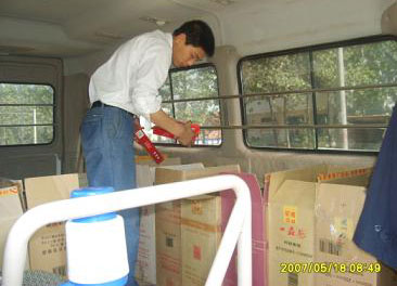 圖為稽查人員監(jiān)督檢查營銷部送貨車輛的情況