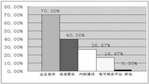 盡管我國(guó)物流信息化發(fā)展較快,但是不得不承認(rèn),與國(guó)際先進(jìn)水平相比,整體水平尚處于較低層次,特別是中小物流企業(yè)的信息化水平很低。一方面,先進(jìn)的信息技術(shù)應(yīng)用較少,應(yīng)用范圍有限。調(diào)查顯示,在國(guó)外物流企業(yè)得到廣泛實(shí)用的條碼技術(shù)、RFID、GPS/GIS和EDI技術(shù)在中國(guó)物流企業(yè)的應(yīng)用不夠理想。同時(shí),立體倉(cāng)庫(kù)、條碼自動(dòng)識(shí)別系統(tǒng)、自動(dòng)導(dǎo)向車(chē)系統(tǒng)、貨物自動(dòng)跟蹤系統(tǒng)等物流自動(dòng)化設(shè)施應(yīng)用不多。另一方面,信息化對(duì)企業(yè)運(yùn)營(yíng)生產(chǎn)環(huán)節(jié)的滲入層次較低。記者經(jīng)過(guò)調(diào)查發(fā)現(xiàn),在信息化水平較高的大中型物流企業(yè),其企業(yè)網(wǎng)站的功能仍然以企業(yè)形象宣傳等基礎(chǔ)應(yīng)用為主,作為電子商務(wù)平臺(tái)的比例相對(duì)較少,大約占16.67%(如圖1所示)。同時(shí),已建信息化系統(tǒng)的功能主要集中在倉(cāng)儲(chǔ)管理、財(cái)務(wù)管理、運(yùn)輸管理和訂單管理,而關(guān)系到物流企業(yè)生存發(fā)展的有關(guān)客戶關(guān)系管理的應(yīng)用所占比例卻很小,大約是23.33%。