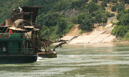 業內人士說,不算水口水電站大壩前的船只,單記者在江面上所見的20多艘運砂船,一天至少有6000方采砂量,一個月按20天算也有12萬方。一年按10個月算也有120萬方。遠遠超過政府規定的40萬方開采總量。