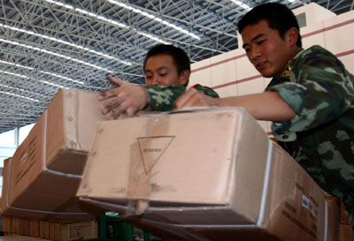 邊防戰士在搬運倉庫中積壓的貨物 為支援地方經濟建設,緩解物流園區交通壓力,2007年7月5日晚,上海公安邊防總隊海警支隊80余名官兵組成“搶運突擊隊”,經過晝夜奮戰,緊急搬運疏散上海外高橋物流園區倉庫貨物3萬噸。 受國家出口退稅政策影響,近期上海外高橋物流園區大量貨物集中出口報關,造成了園區內千余輛集裝箱卡車交通擁擠和園區倉庫貨物超負荷積壓,給園區正常作業秩序帶來嚴重影響。 作者:趙昀