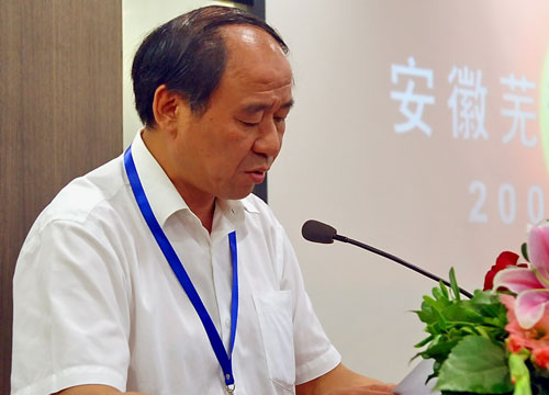 蕪湖市局長吳永成向全國煙草物流會議代表介紹物流建設情況