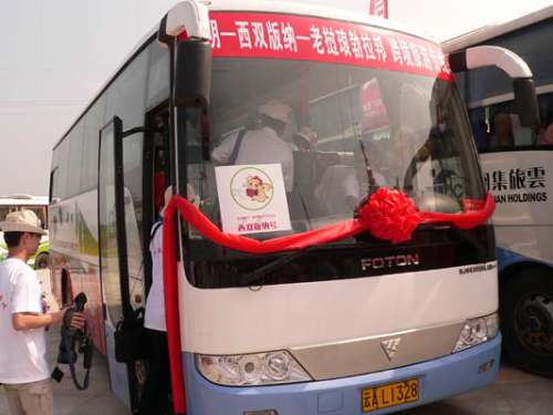 圖:由昆明經(jīng)景洪至老撾瑯勃拉邦的中老首條旅游專線汽車的成功運營標志著中老國際物流合作再上臺階