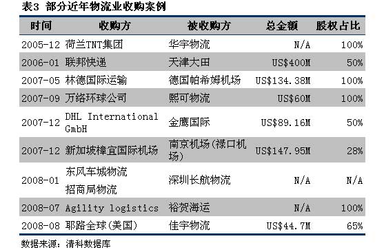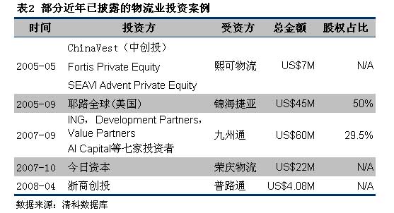 2. 民營物流企業(yè)。由營業(yè)收入超億元甚至10億元的私營物流企業(yè)組成。這個群體也是最受風(fēng)投和私募基金青睞的投資對象。與國有企業(yè)相比,其單純、簡單的背景和股權(quán)關(guān)系都具有很強(qiáng)的吸引力,而且企業(yè)各有專攻,具有較強(qiáng)的發(fā)展?jié)摿Γ?