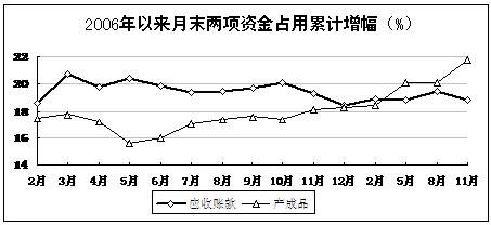 產成品庫存資金升幅提高。11月末,工業企業產成品庫存資金18335億元,同比上升21.8%,升幅同比提高3.7個百分點;應收賬款凈額39712億元,上升18.8%,回落0.5個百分點。