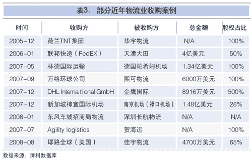 另一方面,國際物流業的并購規模越來越龐大。據報告顯示,2007年前三個季度,國際物流業的并購金額達700億美元,5,000萬美元以上的交易額達95件。這些都預示著國際物流行業的并購趨勢將很快影響中國,跨境之間的并購將會繼續增加。