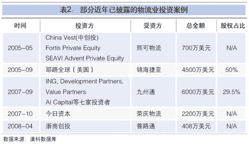 我國的物流市場經過多年的發展,形成了3種形態:國有物流企業、民營物流企業和外資物流企業。它們的經營規模和服務模式各異:1.國有物流企業。由原有的國有物流企業通過重組改制和業務轉型,變成現代化物流企業,并且成為了我國物流市場的骨干力量;2.民營物流企業。由營業收入超億元甚至10億元的私營物流企業組成。這個群體也是最受風投和私募基金青睞的投資對象。與國有企業相比,其簡單的背景和股權關系都具有很強的吸引力,而且企業各有專攻,具有較強的發展潛力;3.外資物流企業。其中大部分都是世界知名的跨國物流企業,也包括許多港臺物流企業。
