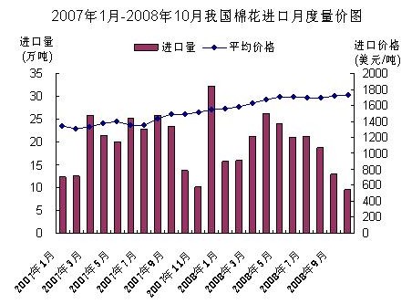 (二)主要進口自美國、印度和烏茲別克斯坦。今年1-10月我國自美國進口棉花82.6萬噸,下降18.8%;自印度進口57萬噸,增長34.4%;自烏茲別克斯坦進口16.6萬噸,下降15.8%。三者合計占同期我國棉花進口總量的83.7%。
