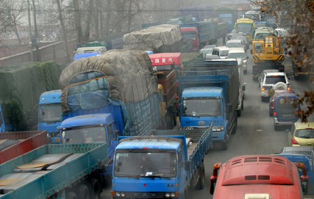 1月28日下午,長春某物流公司廠區(qū)內(nèi)待運的貨物已經(jīng)堆成了小山,經(jīng)理馮殿軍已急得像熱鍋上的螞蟻。為一些大公司做配送的專用車都被暴雪隔在了南方,公司里待運的貨物堆積成山,除了因耽誤交貨時間面臨巨額索賠外,公司長久以來形成的良好聲譽也將遭受影響。