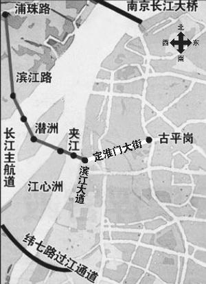 江心洲過江通道:南端從江南濱江大道和緯七路互通立交起步,至浦口接規劃中的江北濱江大道和浦珠路。