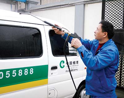 每天送完貨,送貨員都要對(duì)車輛進(jìn)行清洗。