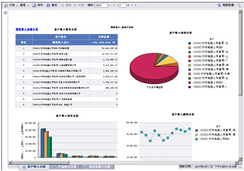 管理者可能從客戶貢獻的角度去分析為什么這三個月以來,訂貨率始終非常低,管理者還可以在界面左邊,了解貢獻度排名前十的客戶。管理者可以依托系統(tǒng),進行貢獻結(jié)構(gòu)分析并通過宏觀的銷售分析模型進行未來半年的貢獻預(yù)估,從而從整體的角度對未來經(jīng)營目標能否完成預(yù)估。