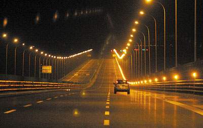 “雖然前期投入大了點,但從長遠(yuǎn)看,節(jié)能效果很好。”駱陳根說,整個大橋共有1844盞路燈,每盞燈間距42米,高度12米,每盞燈功率250瓦,這些數(shù)據(jù)都是經(jīng)過精密設(shè)計的,12米的高度能保證路燈照射到大橋的有效寬度,間距的設(shè)置充分考慮到了眩光對行車的影響,42米的間距可以將這種影響降到最低。”