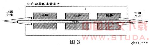 采購原材料、生產(chǎn)制造以及銷售產(chǎn)品構(gòu)成了一個生產(chǎn)企業(yè)的主營業(yè)務(wù),物品及服務(wù)正是在這樣一條鏈上實現(xiàn)增值的,而物流活動則貫穿了產(chǎn)供銷的全過程,并且將企業(yè)與其上游的供給商及下游的客戶有機結(jié)合在一起,如圖3所示: