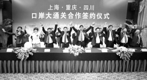 昨日下午,上海、重慶、四川三省市的政府官員及海關駐三省市分支機構的負責人以及三地幾十家相關企業負責人在渝簽署了《滬渝川三省市口岸大通關合作框架協議》等一系列合作協議。協議涉及水、陸、空等運輸領域,包括三地的直線運輸合作、電子口岸搭建及協同、開設成都至上海的集裝箱班列,開設上海至重慶至曼谷的航班等。