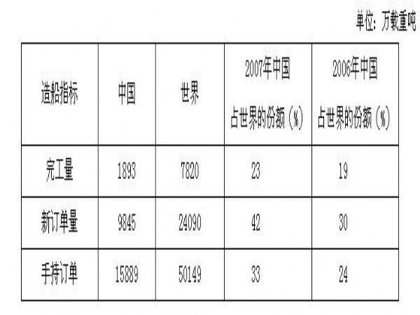 2007年,我國船舶工業繼續保持又好又快的發展,呈現出增長加快、規模擴大、結構優化、效益提高的良好態勢。
