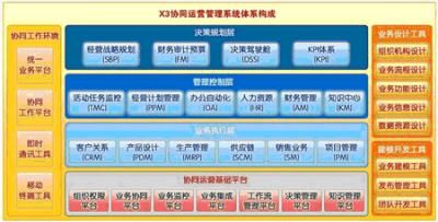 X3協(xié)同運(yùn)營(yíng)管理應(yīng)用涵蓋了企業(yè)所有核心業(yè)務(wù)和管理系統(tǒng),包括OA、SCM、HR、CRM、MRP、 KM、DSS、PPM、EAM、AM等應(yīng)用,并且各應(yīng)用間實(shí)現(xiàn)了無縫連接。X3協(xié)同運(yùn)營(yíng)管理應(yīng)用主要?jiǎng)澐譃橐韵氯齻(gè)層面: