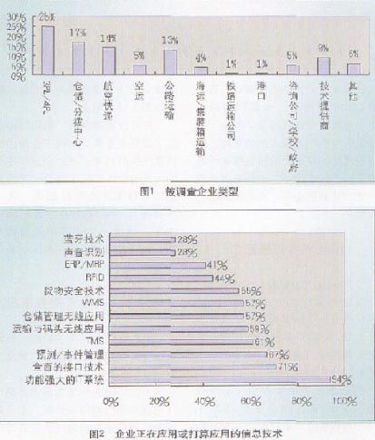 面對運輸與物流中的技術(shù)應(yīng)用在快速地改變已有的商業(yè)模式的現(xiàn)狀,美國《運輸觀察》(Eyes for Transport于2004年12月到2005年1月做了一個有關(guān)物流產(chǎn)業(yè)技術(shù)應(yīng)用的調(diào)查,其目的是了解物流產(chǎn)業(yè)技術(shù)應(yīng)用的狀況,更準(zhǔn)確地描述該產(chǎn)業(yè)技術(shù)的焦點;了解在廣泛的技術(shù)選擇中,以客戶驅(qū)動技術(shù)投資的程度;了解企業(yè)在技術(shù)升級、增強技術(shù)能力時的關(guān)鍵驅(qū)動力。