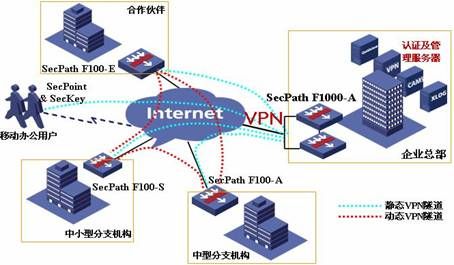 SecPath F100-系列防火墻結(jié)合VPN的典型組網(wǎng)圖如下所示: