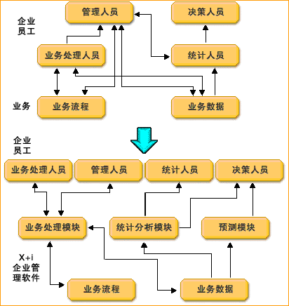 從上圖中可以看出,采用了X+i企業(yè)管理軟件后,企業(yè)發(fā)生了如下轉(zhuǎn)變: