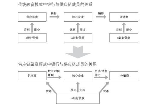 供應(yīng)鏈金融使銀行從新的視角評(píng)估中小企業(yè)的信用風(fēng)險(xiǎn),從專(zhuān)注于對(duì)中小企業(yè)本身信用風(fēng)險(xiǎn)的評(píng)估,轉(zhuǎn)變?yōu)閷?duì)整個(gè)供應(yīng)鏈及其交易的評(píng)估,這樣既真正評(píng)估了業(yè)務(wù)的真實(shí)風(fēng)險(xiǎn),同時(shí)也使更多的中小企業(yè)能夠進(jìn)入銀行的服務(wù)范圍。一方面,將資金有效注入處于相對(duì)弱勢(shì)的上下游配套中小企業(yè),解決供應(yīng)鏈?zhǔn)Ш鈫?wèn)題;另一方面,將銀行信用融入上下游企業(yè)的購(gòu)銷(xiāo)行為,增強(qiáng)其商業(yè)信用,改善其談判地位,使供應(yīng)鏈成員更加平等地協(xié)商和逐步建立長(zhǎng)期戰(zhàn)略協(xié)同關(guān)系,提升供應(yīng)鏈的競(jìng)爭(zhēng)能力,促進(jìn)了整個(gè)供應(yīng)鏈的持續(xù)穩(wěn)定發(fā)展。