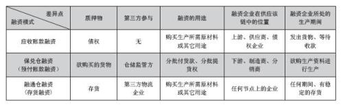 應(yīng)收賬款融資、保兌倉(cāng)融資和融通倉(cāng)融資在具體運(yùn)用和操作的過(guò)程中存在差異,分別適用于不同條件下的企業(yè)融資活動(dòng),具體如表所示: