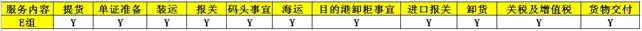 該組條款下,業(yè)務(wù)由買家指定,海外代理負責(zé)全程的物流項目,其中包括下列的所有服務(wù)范圍: