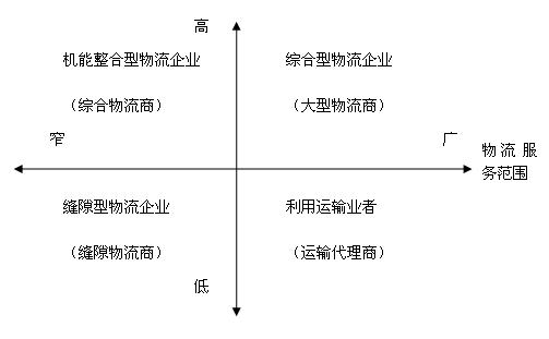 1.競爭企業的戰略類型 以物流服務的范圍和機能整合性把物流企業分為四種類型:綜合物流商、大型物流商、縫隙型物流商、運輸代理商等。 2.先驅型企業的戰略――綜合物流 3.機能結合型企業的戰略――系統化物流 4.運送代理型企業的戰略――柔軟性物流 5.縫隙型企業的戰略――差別化、低成本物流
