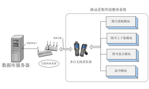在摩托羅拉企業(yè)移動(dòng)業(yè)務(wù)圖書(shū)行業(yè)條碼系統(tǒng)解決方案中,移動(dòng)采集終端整體系統(tǒng)由圖書(shū)采購(gòu)模塊、圖書(shū)上下架模塊、圖書(shū)盤(pán)點(diǎn)模塊、退書(shū)模塊四部分組成。該系統(tǒng)的主要功能主要包含一下四個(gè)方面: