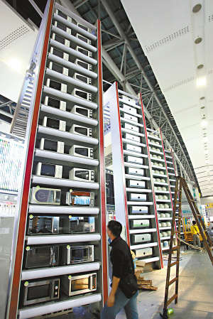 廣州會展業(yè)越來越重視品牌形象,對展商展臺也要求設計新穎。 王燕 攝