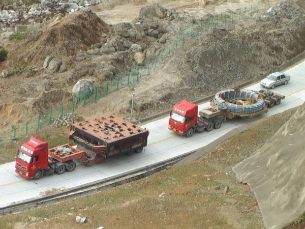 TBM項(xiàng)目分為普通貨物和超寬件大件運(yùn)輸兩部分,普貨部分于2007年12月26日啟運(yùn),第一車也于2007年12月30日順利到達(dá)錦屏工地;普貨部分并于2008年4月10日全部安全到達(dá)工地。