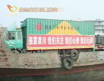 宜昌市港航管理局工作人員 孫明:我們組織了119艘船,近30多萬噸的運(yùn)力,保證抗震救災(zāi)物資及時(shí)、暢通、安全地到達(dá)四川災(zāi)區(qū)。