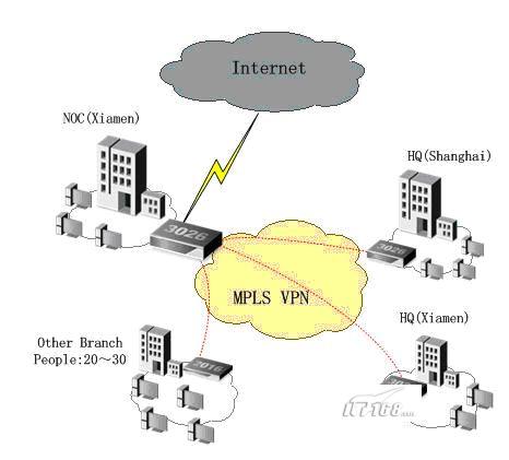 某物流公司共有26個分公司,總部在上海,全國約有500個用戶。總部與各分公司之間通過租用的MPLS VPN進行互聯,相應帶寬根據各自的需求進行靈活分配。目前,網絡各分支節點的網絡比較簡單,所用的設備也參次不齊,加上分公司各自分別接入互聯網,總部無法對各分公司實行實時統一的管理及監控,內網的安全問題存在著極大的隱患。